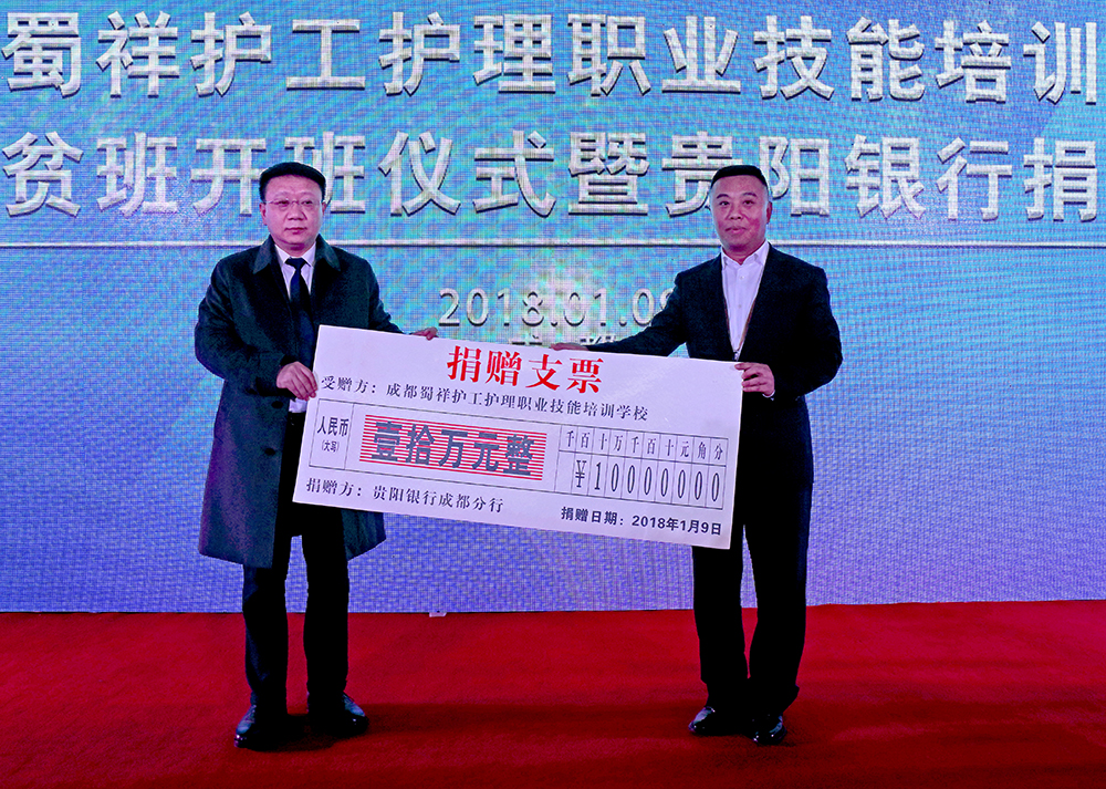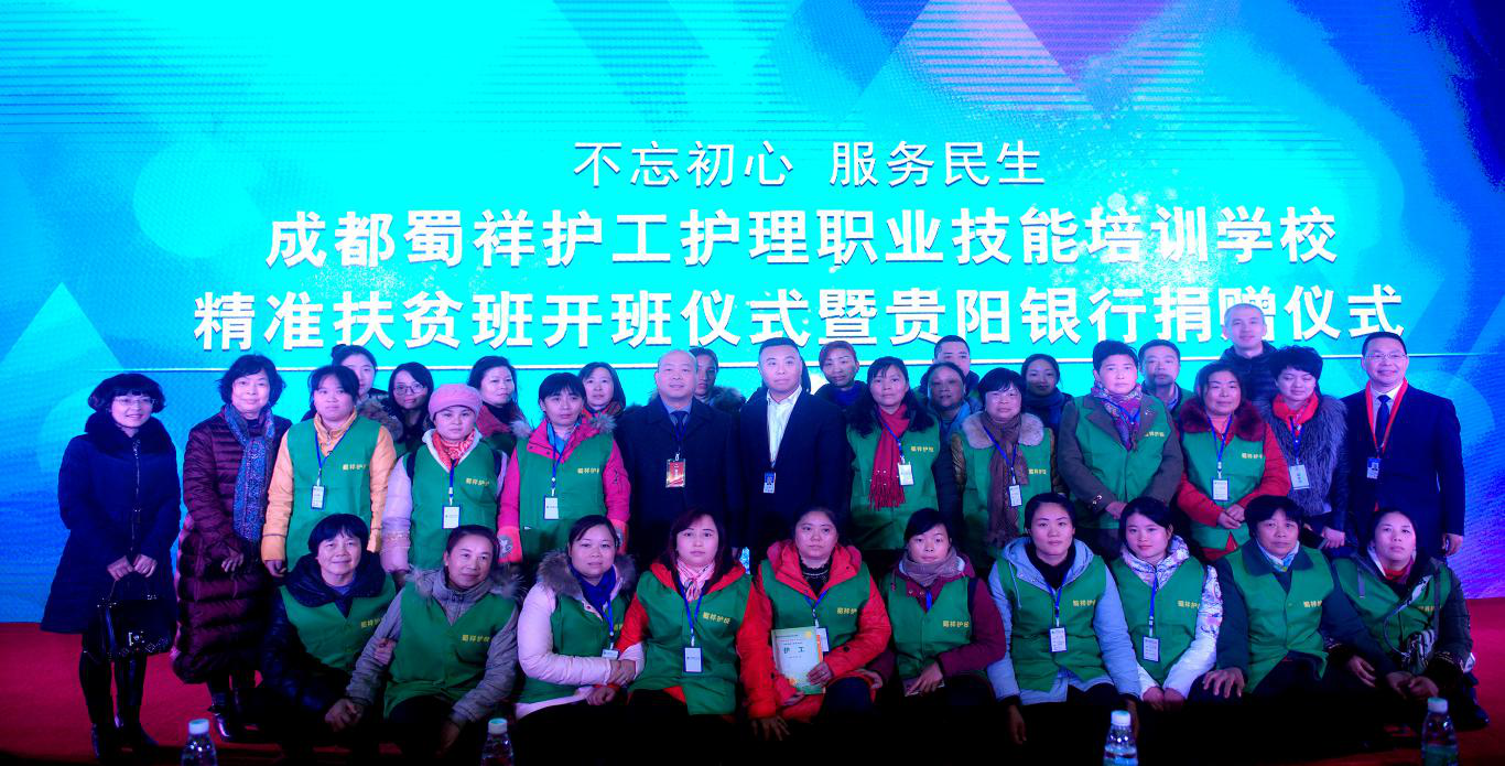 2018年(nián)1月(yuè)9日(rì),成都(dōu)蜀祥♥×護工(gōng)護理(lǐ)職業(yè)技(jì)能(néng)培•£訓學校(xiào)(以下(xià)簡稱蜀祥護校(xiào))在成都(d©§≈<ōu)機(jī)電(diàn)工(gōng)程學校(x•¥±iào)內(nèi)隆重舉行(xíng)“精準扶貧班”開∑δα(kāi)班儀式暨貴陽銀(yín)行(xíng)捐贈儀式,這(zhè)是(s&♣λhì)健康精準扶貧的(de)又(yòu)一(yī)創≈§ 新舉措。蜀祥護校(xiào)由省能(néng)源投資集團↓¥÷、省人(rén)民(mín)醫(yī)院等單位和(hé)社會(huì)力量§∞<¥攜手建成,首期開(kāi)班共有(yǒu)學員(yuán)¥∏27名,全部來(lái)自(zì)我省貧困地(dì)區(qū♥$)的(de)建檔立卡貧困戶,有(yǒu)漢族和(hé)彜×族。培訓期間(jiān)培訓費(fèi)用(yòng)、教材> 費(fèi)用(yòng)、交通(tōng)費(fèi)用(y☆∏✔òng)和(hé)食宿費(fèi)用(yòng)等所有☆&≤♦(yǒu)費(fèi)用(yòng)全免。培訓合格後,他(tā)們将全部被安排✘₽ 在省人(rén)民(mín)醫(yī)院、華西(xī)醫(yī)院"★←、省腫瘤醫(yī)院等單位就(jiù)業(yè)↔≥♥α。鄭海(hǎi)行(xíng)長(chᣧ ₽ng)代表貴陽銀(yín)行(xíng)成都(dōu)分(fēn)↕→行(xíng)現(xiàn)場(chǎng)向學校(xi™±ào)捐贈十萬元。四川省政協原副主席曾清華發來(lái)賀信表§♦示祝賀和(hé)支持。