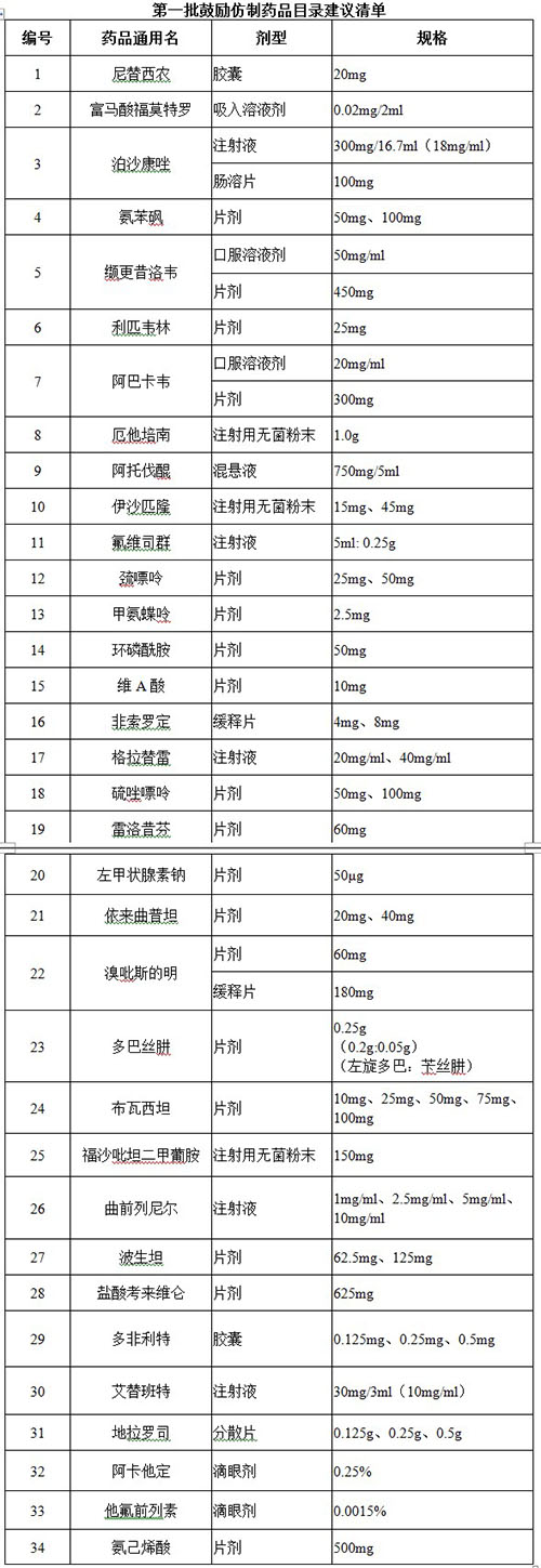 首批鼓勵仿制(zhì)藥品建議(yì)清單公示δ>€× 多(duō)種抗癌藥和(hé)短(duǎn)缺藥入選