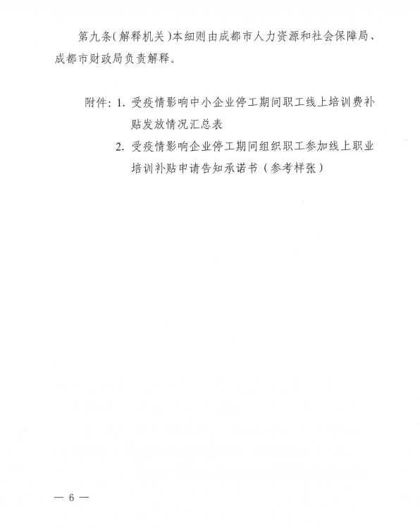 成都(dōu)市(shì)受疫情影(yǐng)響中小(xiǎo )企業(yè)職工(gōng)線上(shàn g)職業(yè)培訓補貼實施細則