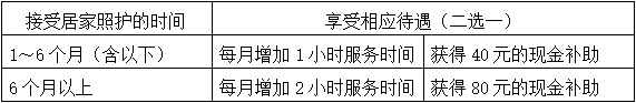 對(duì)于評估等級為(wèi)五級或六級接受居家(jiā)照(z©÷hào)護服務的(de)參保人(rén)員(yuán)在規定每周7小(xiγ×¶ǎo)時(shí)的(de)服務時(shí)間(jiān)φε基礎上(shàng),還(hái)可(kě)享受如(rú)下(xi™♣à)待遇: